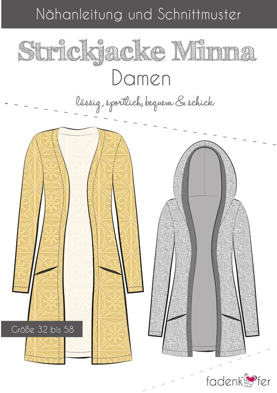 Schnittmuster Strickjacke Minna Strickmantel Cardigan Damen Etsy Osterreich